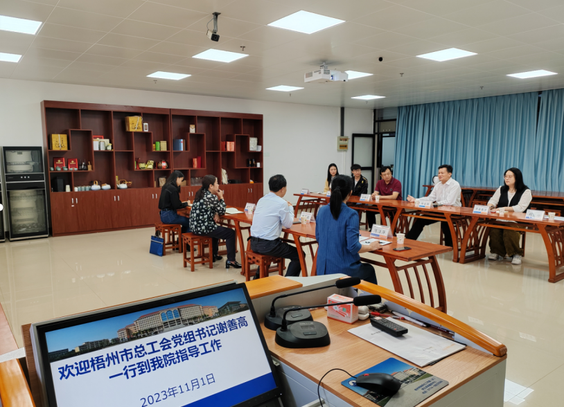 2023年11月1日上午9时,梧州市总工会党组书记谢善高书记一行四人来公司调研六堡茶现代产业学院建设情况,并共商建设广西六堡茶工匠学院事宜进。学校工会彭赞文常务副主席、食药学院陈金辉书记及茶学教研室相关教师陪同座谈。在会上,陈金辉书记介绍了太阳成集团tyc122ccvip的团队力量、专业建设、科研基地建设、科研进展、社会服务等情况。与会人员也发表了一些意见建议。谢善高书记在听完相关介绍后,对我们学院所做的工作给与肯定,并建议学院整合六堡茶产业链上的相关专业资源,同总工会一起协力申报自治区级的六堡茶工匠学院,同时也对六堡茶工匠学院成立后对六堡茶产业的推动作用,以及对六堡茶产业链上的员工培养的促进作用进行了展望。彭赞文副主席、陈金辉书记表示将全力配合市总工会开展自治区级的六堡茶工匠学院申报工作。