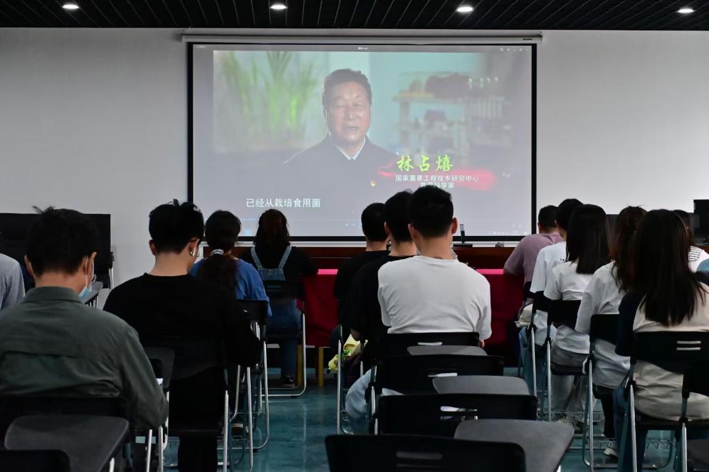 2024年3月27日下午,太阳成集团tyc122ccvip党委在北区实训楼N205组织全体师生党员观看了菌草技术发明人和学术带头人,感动中国2022年度人物——林占熺的事迹短视频。