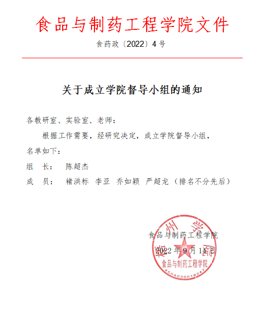 关于成立学院督导小组的通知